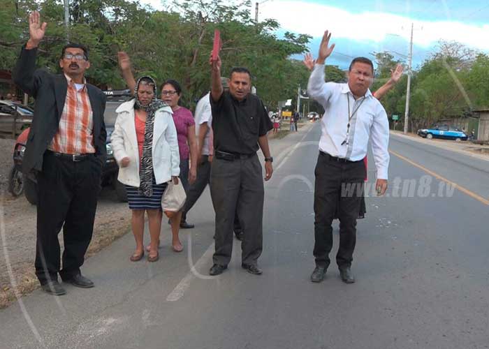 Acompañados por el Comisionado Mayor Alejandro Rivera, Jefe de Tránsito de la Policía Nacional en Nueva Segovia y bajo resguardo de agentes de tránsito los representantes de al menos 8 iglesias evangélicas se congregaron este fin de semana en la entrada sur de la ciudad de Ocotal, cabecera departamental para orar a favor de que Dios permita una mengua en la ocurrencia de accidentes.