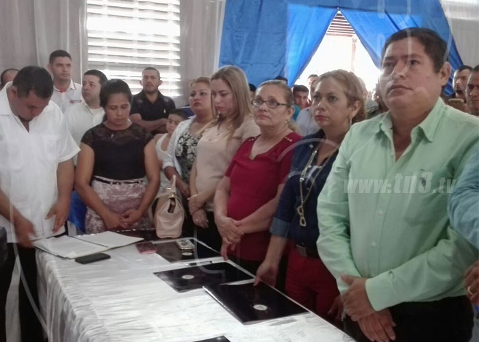 En esta sesion asumieron sus cargos 46 concejales propietarios y suplentes, así como la compañera Martha Azucena Bucardo Polanco (alcaldesa); el Lic. José Alberto Montoya Soza (vicealcalde), y la compañera Isaura González Arróliga, quien resultó electa como Secretaria del Concejo Municipal de forma dividida con 13 votos a favor y 10 votos en contra.