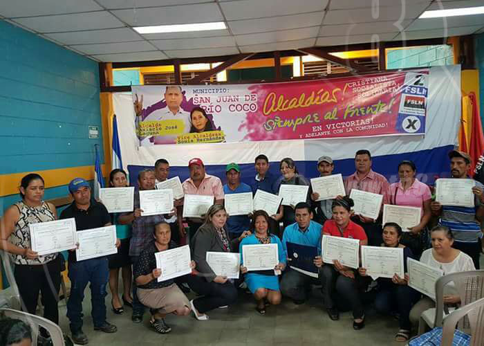 “Lo que haremos en este nuevo periodo es continuar ejecutando las buenas obras que este Gobierno trae para la población sanjuaneña. En este período construiremos el mega parque familiar, el proyecto de agua potable urbano, mercado municipal, reparación de carreteras, entre otros proyectos de beneficio para las familias”, expreso Asísclo Laguna Mairena, alcalde electo de San Juan de Río Coco.