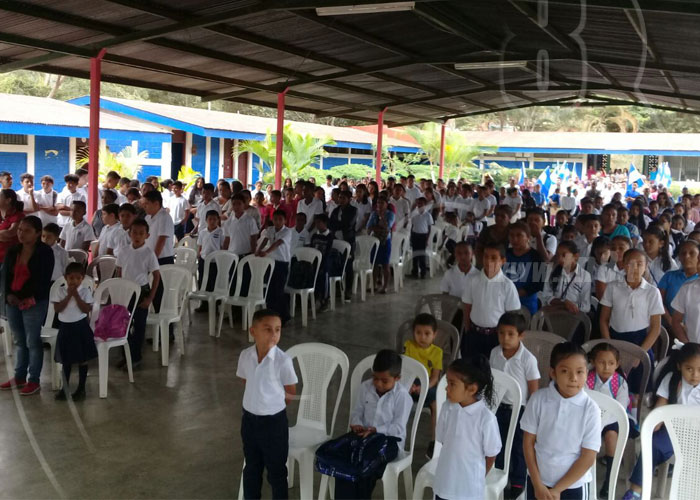 Tras el ingreso del Pabellón Nacional y el canto del himno nacional, la delegada del Ministerio de Educación de San Juan de Río Coco, la compañera Nora Calero, expresó sus mejores deseos para el buen desempeño de este nuevo ciclo escolar. Al mismo tiempo destacó las capacitaciones que han tenido maestros y maestras para iniciar este año lectivo.