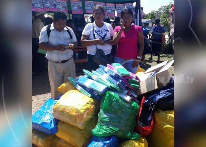 La entrega se realizó simultáneamente en los tres municipios mencionados, en Bilwi se entregaron 1 077 maletines, en Waspam 696 y en Prinzapolka se entregaron 162 maletines para docentes.