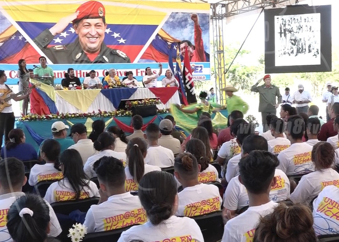 "Reafirmamos amor a Chávez, amor a Venezuela, porque Chávez es una aurora inmortal, por sembrar esperanza todos los días, recordando lo bueno para cambiar el mundo. Chávez nos visitaba como un hermano, nos hablaba con la verdad. Hoy se ve a Chávez reflejado en el amor de los padres y madres, en la juventud", dijo Milton Ruíz, Coordinador Nacional de la Juventud Sandinista.