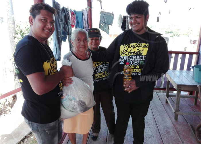 Este martes la Promotoría Solidaria en conjunto con 18 jóvenes de la Juventud Sandinista en Bluefields, entregaron casa a casa los paquetes alimenticios enviados por la presidencia de Nicaragua para las madres y padres de héroes y mártires de la ciudad de los Campos Azules.