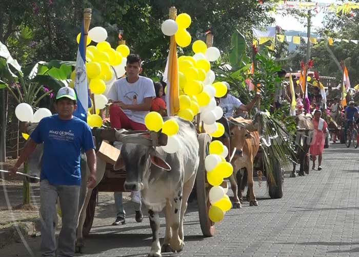 La fe mueve a las familias de Niquinohomo, quienes fueron esperados con brindis y promesantes a bordo de carretas llenas de ofrendas para la enramada en honor al Santo, al Son de filarmónicos.