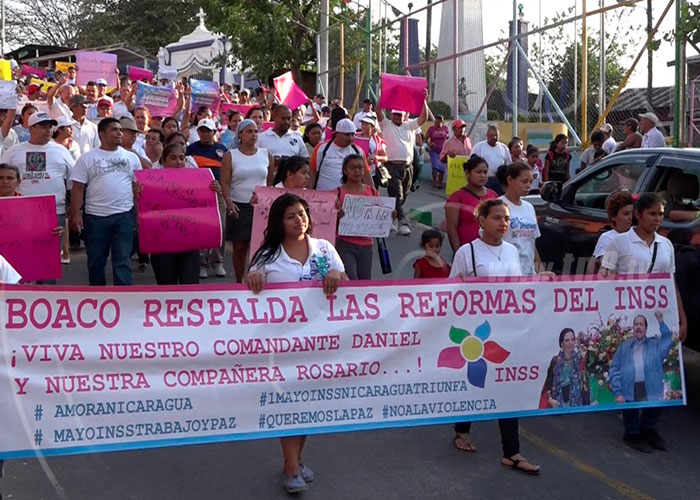 Adultos y jóvenes del departamento de Boaco, marcharon por las diferentes para respaldar la reforma del Instituto de Seguridad Social (INSS).