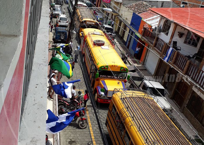 La población boaqueña perteneciente a los diferentes sectores salieron en buses, camionetas y camiones rumbo a la Plaza de las Victorias a celebrar el Día del Trabajador y a conmemorar el paso a la inmortalidad de Tomás Borge, además para decir sí a la paz y al diálogo que impulsa este Gobierno.