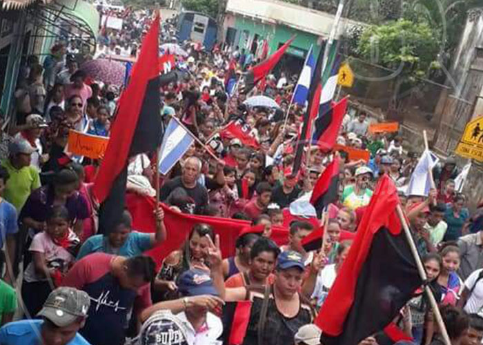 Centenares de pobladores de San Juan del Río Coco, participaron hoy domingo en una masiva caminata en respaldo al Comandante Daniel Ortega, al Diálogo y la Paz.
