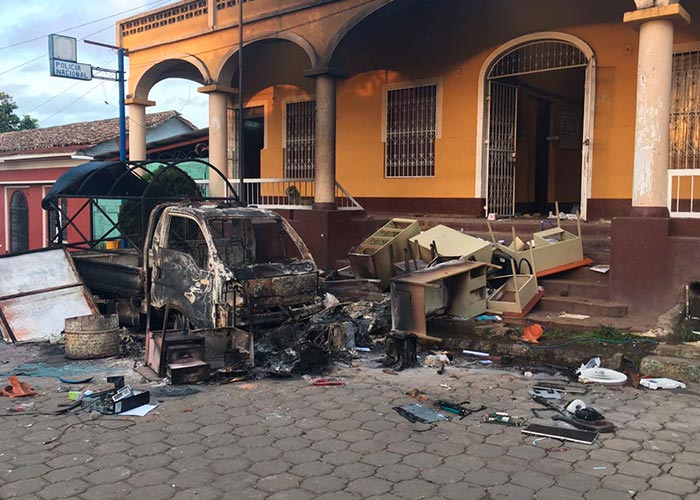 #Nicaragua Alcaldía de Diriá es saqueada por grupos de vándalos y camioncito quemado #NicaraguaQuiereLaPaz #NoMasViolencia pic.twitter.com/LI5RLfmOnJ