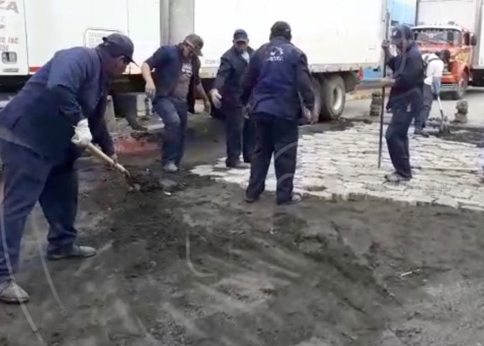Pobladores de la ciudad de Masaya junto a trabajadores de la comuna, la mañana de este jueves se dieron a la tarea de quitar las barricadas y colocar nuevamente los adoquines en las calles para permitir la libre circulación vehicular.