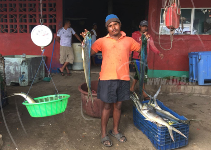 Francisco Toval, acopiador en Puerto Corinto, dijo que; están sacando al rededor de 3 mil, libras de Pez Dorado, en un día de faena.