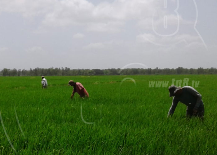 En el mismo sector del Timal también visitamos al productor Rafael Meza, quien tiene sembrado 400 manzanas de arroz, dice que gracias a Dios el clima de seguridad en el campo es bueno, gracias al buen trabajo del Gobierno Sandinista y la Policía Nacional, quien es la encargada de garantizar la seguridad a todos los productores de arroz del Timal, se sienten agradecidos con el Gobierno Central porque les dio las tierras para que sembraran, además reciben asistencia técnica por el MAGFOR en cuanto a la siembra , cuido y corte del arroz.