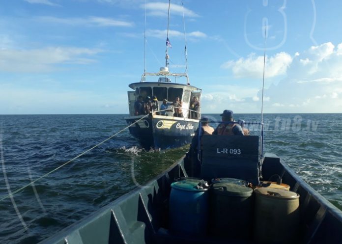 Al conocer de la situación, el mando del Distrito Naval Caribe, ordenó inmediatamente el zarpe de un equipo de rescate conformado por 4 efectivos militares y una lancha rápida, arribando a la posición del barco a las 4:25 pm, una vez certificado el estado de salud de la tripulación y el estado técnico de la embarcación, fueron trasladados hacia el Puesto de Tropas Navales de Barra de Laguna de Perlas.