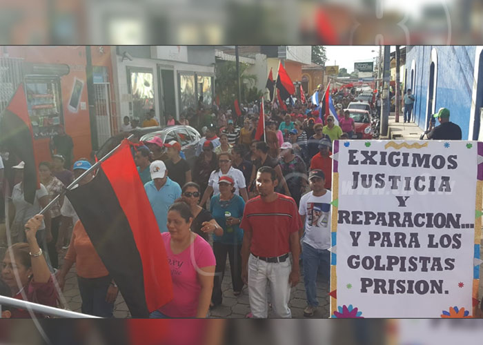 "Nosotros hoy estamos caminando, conmemorando la gesta heroica de Pancasán, pero también estamos caminando exigiendo justicia para estos golpistas, en el acto central se le estará entregando al Comandante Daniel en Managua un listado con más de 500 mil firmas, exigiendo esa justicia para que los magistrados del Poder Judicial ejerza todo el peso de la ley para estos vándalos", Expresó Hazel Aguilar Coordinador Departamental de Juventud Sandinista.