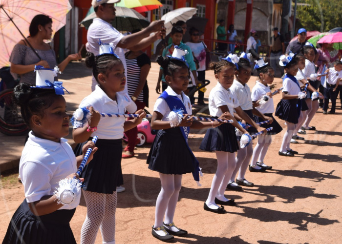 Pequeños estudiantes de educación inicial y primaria demuestran el amor y respeto a la patria con un desfile en las calles de la ciudad de Bilwi, Puerto Cabezas, en la Costa Caribe Norte de Nicaragua.