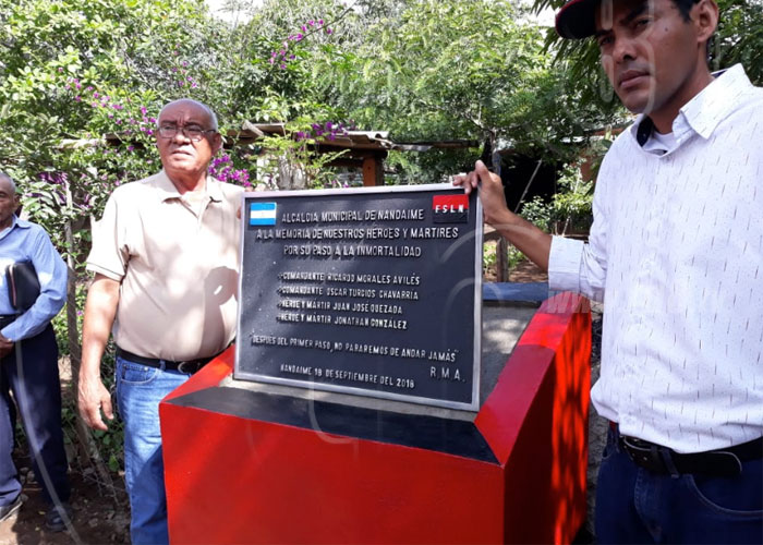 Autoridades de Nandaime este martes develaron una placa en La Montañita, comunidad donde fueron asesinados los compañeros sandinistas Ricardo Morales, Juan José Quezada, Jonathan González y Oscar Turcios.