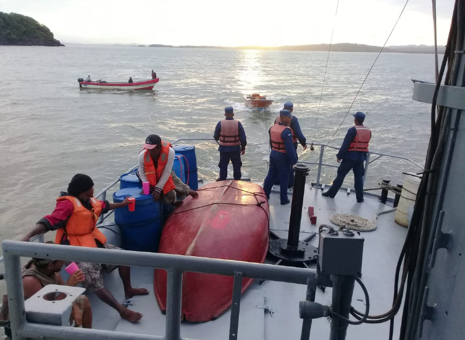 A las 4:25 pm, luego de ser atendidos por los tripulantes del Guardacostas 205 “Río Escondido”, certificando su estado de salud y estado técnico de la embarcación “Domingo I” y su tripulación fueron trasladados hacia El Bluff, donde se coordinó con el SILAIS Bluefields para atención médica especializada.