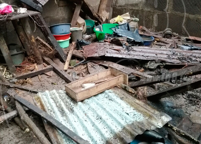Debido a las fuertes lluvias caídas en este fin de semana, la humilde casita de la señora Luisa Amanda Morraz Peralta, colapsó totalmente quedando a la intemperie, ésta habita en la comunidad de Monte Grande Oriental, de la Escuela Angelita Morales 200 metros al este.