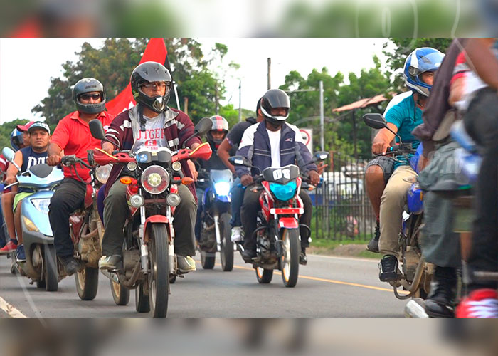 Esta caravana salió desde la Casa Sandinista, recorriendo las calles de diferentes barrios del este municipio donde los que encabezaban esta caravana era la brigada motorizada Carlos Fonseca Amador, más decenas de vehículos que se sumaron a la misma donde muchas familias viajaban ondeando sus banderas roja y negra en señal de respaldo al Frente Sandinista.