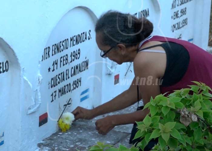 Una vez en el cementerio se rindió homenaje colocando una flor en las tumbas y monumentos de los caídos en la lucha por una Nicaragua Libre contra la Dictadura Somocista.