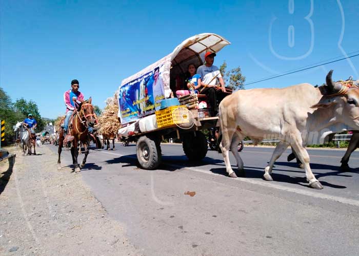 El mediodía de este miércoles salieron de diferentes barrios y comunidades de Somotillo, familias en carretas, a caballo y a pie rumbo hacia el Santuario del Señor de los Milagros de Esquipulas de El Sauce.
