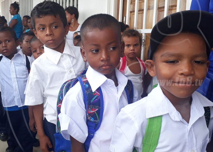 Estudiantes indígenas, mestizos y afrodescendientes de la Costa Caribe Norte de Nicaragua iniciaron el año escolar 2019 con una masiva participación.