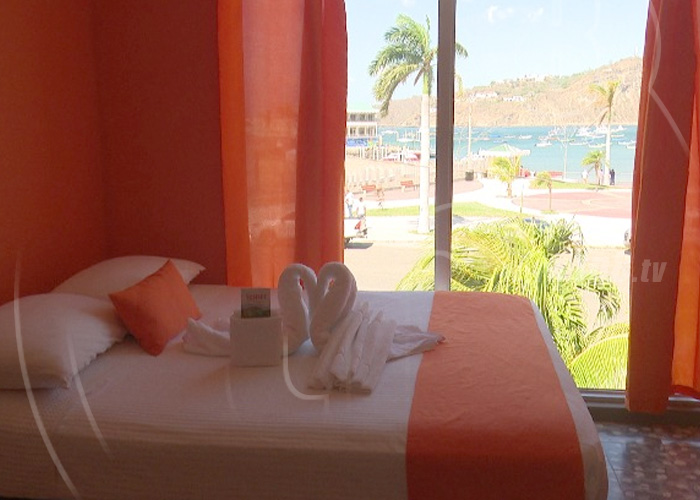 El hotel se ubica frente al malecón, a uno de los costados del puerto en San Juan del Sur.