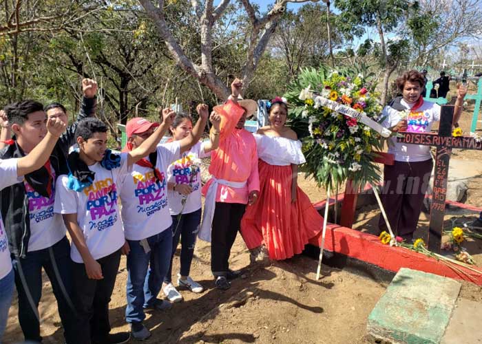 Los jóvenes también colocaron ofrenda floral en la tumba del compañero Rito Moisés Rivera, en el cementerio de la comarca El Comején.