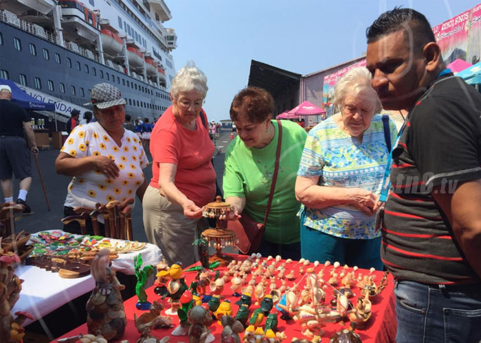 En el muelle del puerto, una variedad de productos son ofertados por los artesanos y empresarios locales quienes mueven la economía familiar y promueven sus negocios con la llegada de estos cruceros.