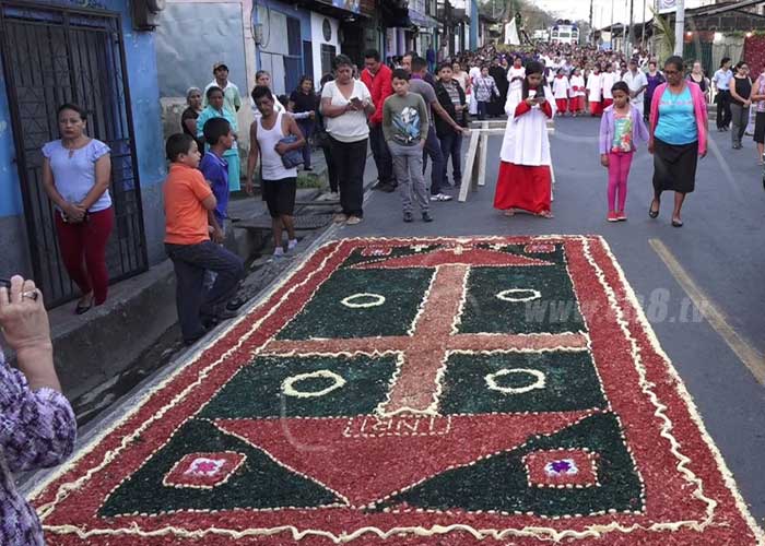 En este último viacrucis los católicos trabajaron toda la noche para elaborar las impresionantes alfombras de aserrín, las que adornaron la avenida principal de la ciudad de dos pisos, Boaco. Cada una de estas alfombras lleva dibujado parte de las estaciones de la pasión, muerte y resurrección de nuestro señor Jesucristo. Para realizar estas alusivas alfombras de aserrín los católicos trabajaron toda la noche.