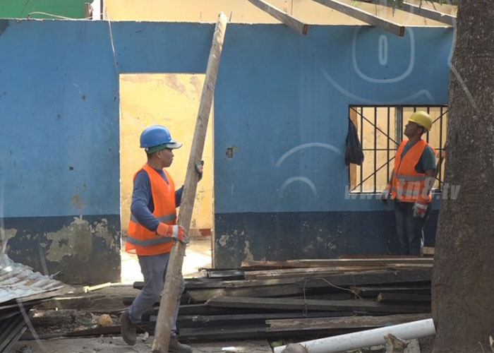 Con el propósito de mejorar la calidad de servicios hacia los habitantes del municipio Condega, en el departamento de Estelí, se realiza la demolición de la delegación policial para construir un nuevo edificio con las condiciones necesarias.