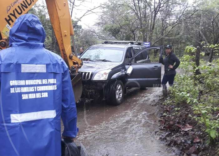 El vehículo fue extraído, por una de las maquinarias de la municipalidad, este resultó con serios daños en su carrocería, mientras la mujer que se dirigía solo entre lágrimas del nervio se mostró muy agradecida con los trabajadores de la alcaldía de San Juan del Sur, quienes le salvaron la vida sin medir los riesgos que corría al ingresar para su rescate.