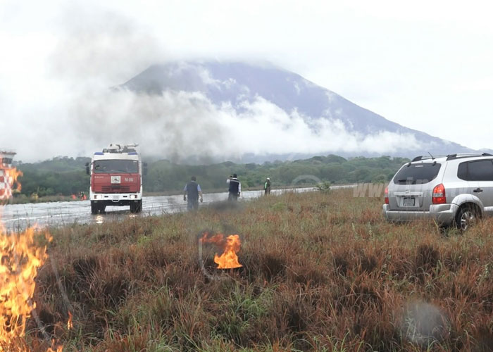 En un primer escenario se tomó como emergencia los desperfectos mecánicos de un avión con vuelo de salida de la capital Managua, cuyo destino era la Isla de Ometepe. La llamada de emergencia fue recibida a las 10 de la mañana, la solicitud de aterrizaje forzoso fue recepcionada por la torre de control de la terminal aérea, activándose de esta manera los protocolos de emergencia.