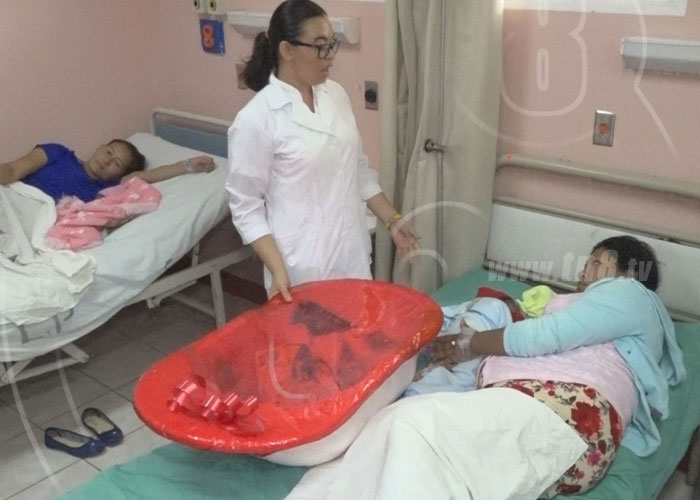 Las autoridades municipales realizaron la entrega de regalos a madres que dieron a luz a sus bebés en el hospital Escuela San Juan de Dios de Estelí este 30 de mayo.