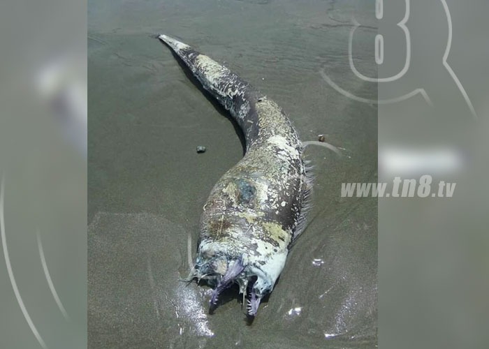 Consternados, asombrados y con miedo están habitantes de la zona, luego de la aparición del cadáver de una especie marina muy rara y nunca antes vista por esos lados de las costas de playa el coco de San Juan del Sur, Rivas.