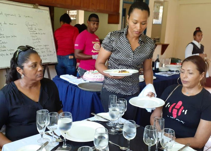 25 protagonistas de pequeños negocios que brindan servicios de restaurantes, bar y comiderías, con aspiraciones de emprender, están siendo capacitados en el tema de montajes de eventos.