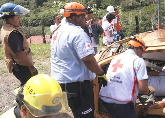 Dos personas quedaron hipotéticamente atrapadas en la cabina de un vehículo cuando ocurrió un deslizamiento de tierra al sur de ciudad de Estelí, por el sector conocido La Gavilana, sobre la Carretera Panamericana. Esto fue parte del Tercer Ejercicio Multiamenazas desarrollado el jueves en Nicaragua.
