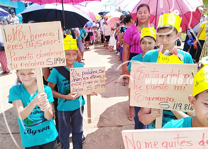 Muchas carrozas portaban letreros alusivos a la biblia, así como pasajes bíblicos; la comunidad evangélica desde día atrás han realizado actividades alusivas a esta esta fecha tan importante.