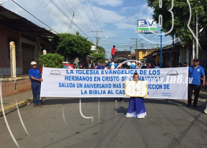 Con un desfile de alabanzas y carrozas por las principales calles de la ciudad de Chinandega, los cristianos evangélicos celebraron la tarde de hoy domingo, el 450 aniversario de la traducción de la biblia al castellano.