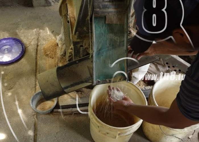 Mensualmente acá se procesan más de 80 quintales de arroz en granza, los residuos son aprovechados para la alimentación de cerdos y aves dándole un valor agregado a su trabajo que a diario realiza desde las 9 de la mañana.