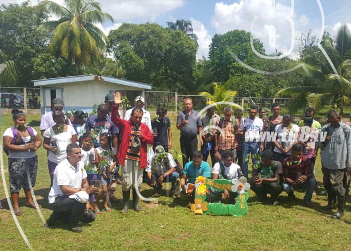 Habitantes de 6 comunidades indígenas del municipio de Waspán reforestan la cuenca Likus con más de 12 mil plantas frutales y forestales.