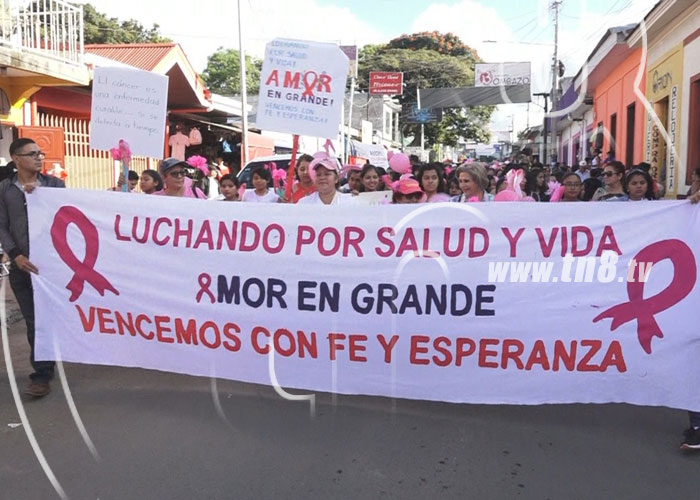 Mujeres de los diferentes barrios de Estelí en conjunto con el Ministerio de Salud realizaron una caminata por la avenida central de la ciudad en conmemoración al día mundial de la lucha contra el cáncer de mama.