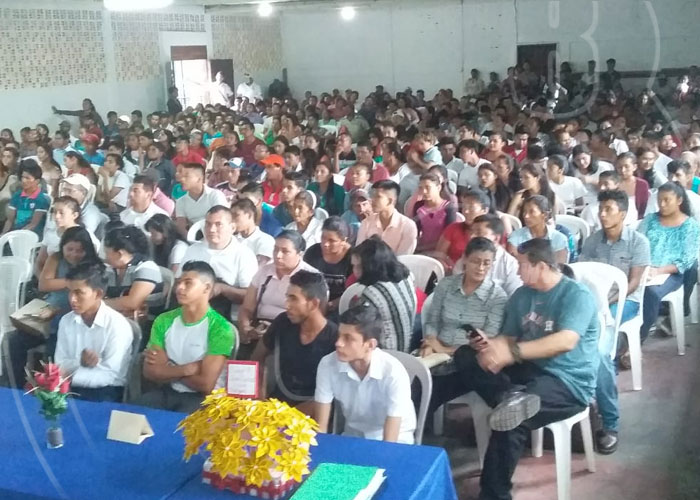 El compañero Juan Alcides Bravo Mendota, delegado municipal de la educación, indicó que "gracias a ese amor y esa solidaridad que solo se expresa con un Gobierno Revolucionario como el que tenemos, 396 bachilleres de todo el municipio hasta los lugares más lejanos hoy se dieron cita para recibir su bono de promoción de 1 mil córdobas".