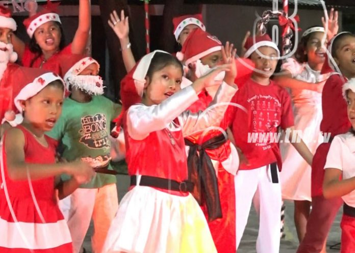 La actividad fue organizada por las autoridades locales, la cancha deportiva del parque Gaspar García Laviana fue el escenario de las coloridas presentaciones culturales que realizaron jóvenes artistas quienes bailaron y cantaron las canciones típicas de la navidad.