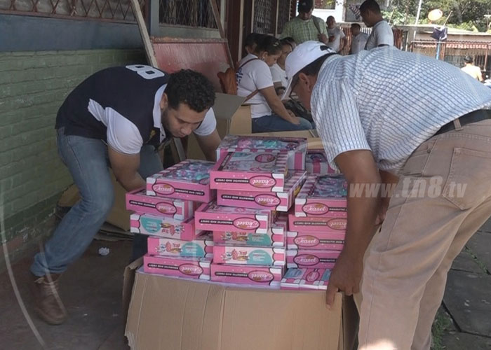 La entrega de los juguetes que se realizará en todo el municipio se lleva a cabo en los centros educativos que administra el Ministerio de Educación (MINED).