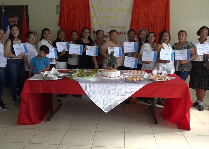 El trabajo coordinado del Ministerio de la Familia y el Tecnológico Nacional Alcides Miranda de Boaco, rinde sus frutos con la promoción de 30 mujeres protagonistas del Programa Amor, de los cursos de elaboración en comidas nicaragüenses y repostería