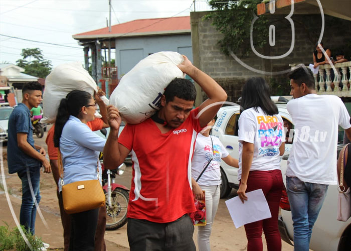 Miriam Picado, Coordinadora Regional del Movimiento Ambientalista Guardabarranco, quien junto a otros jóvenes de la Juventud Sandinista se dispusieron la tarde de hoy a repartir estos paquetes dijo que, "este es trabajo que la JS realiza, llevar esta ayuda a cada hogar, y es que más de 40 promotores solidarios trabajaron arduamente cargando los distintos vehículos y llevando los paquetes a cada hogar.