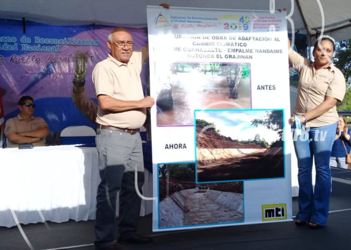 El Gobierno Sandinista inauguró el día de hoy viernes, a través del Ministerio de Transporte e Infraestructura (MTI) y la Alcaldía de Nandaime, las obras hidráulicas de adaptación al cambio climático en el sector de la rotonda La Biblia, antes empalme Grajinan, de Nandaime.