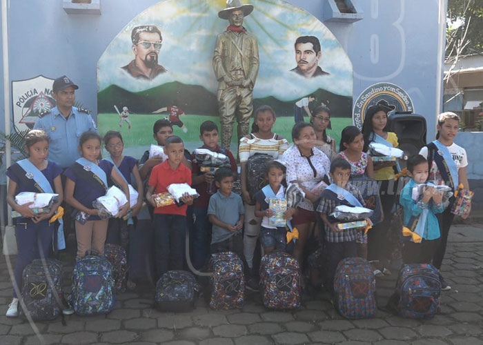 Al menos 16 niños y adolescentes, hijos de policías, fueron beneficiados al recibir útiles escolares. La entrega la hicieron las autoridades policiales de la ciudad de León, en nombre del Gobierno y jefatura central.