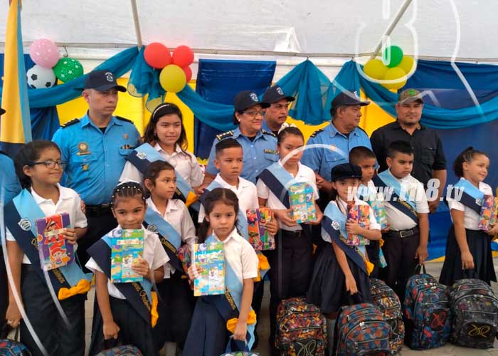 En reconocimiento al trabajo arduo que ejerce la Policía Nacional en el departamento de Boaco, el Gobierno central, realizó la entrega de un paquete escolar a hijos de los oficiales de policía.