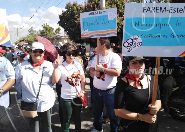 “En esta revolución solo con el frente sandinista hemos tenido oportunidades para ser protagonistas con nuestros propios negocios logrando mejorar las vidas de nuestros hijos aportando a la economía de la ciudad de Estelí, borrando de la mente de los hombres ese machismo porque ellos mismos se han dado cuenta que no solo uno puede salir adelante y que tiene que ser la familia unida y con esta caminata estamos afirmando nuestro agradecimiento al gobierno de Nicaragua”, dijo Alejandra Salinas habitante.